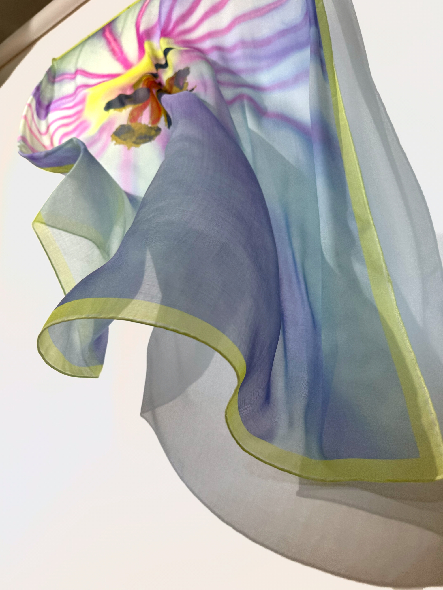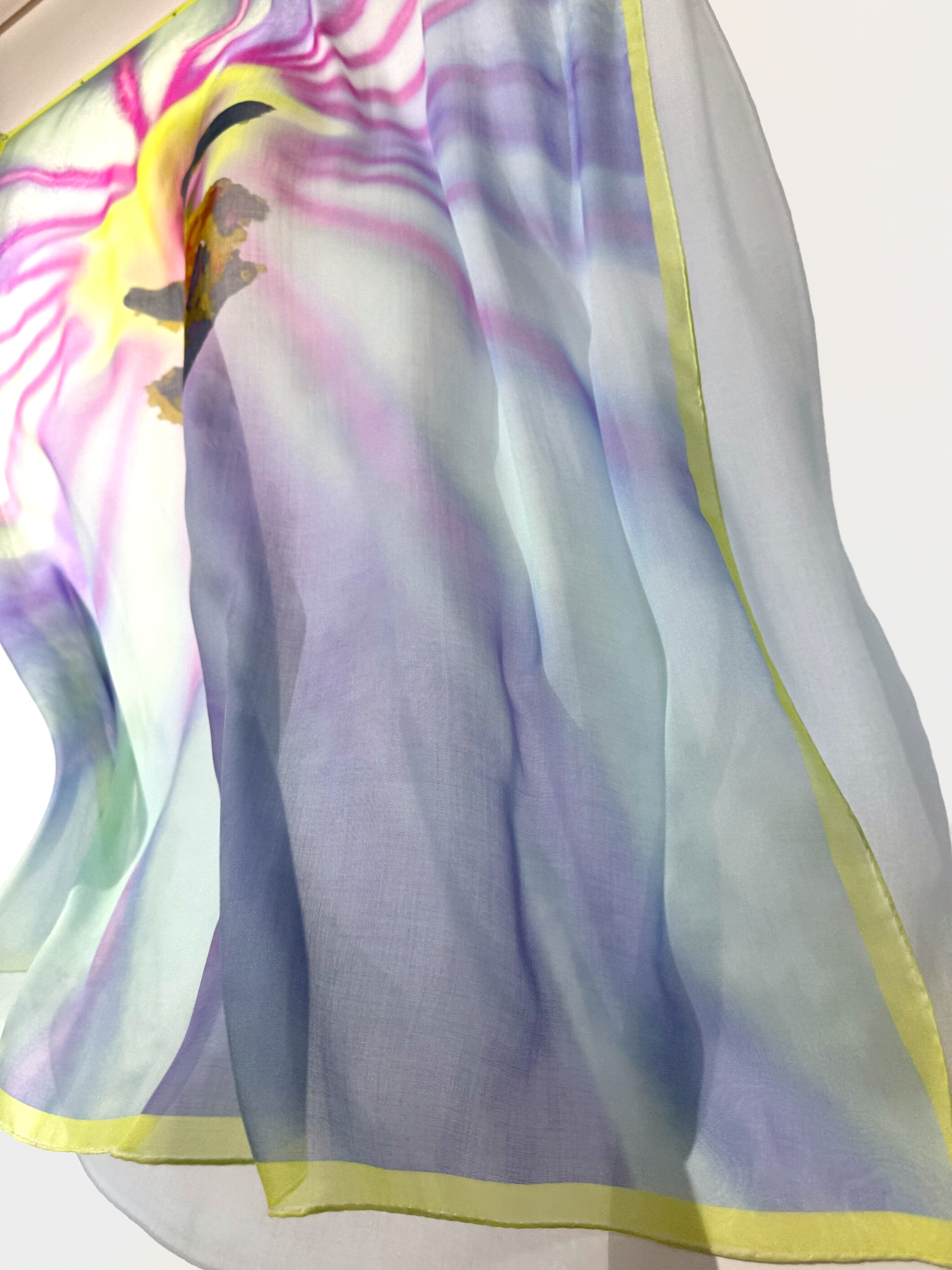 Scarf features a close-up of a wildflower print crafted from lightweight cotton.
